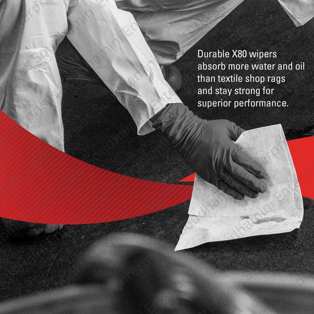 Compact and quarter-folded for convenience, Wypall X80 wipes are ideal for workshops, manufacturing units, and maintenance areas where consistent performance and lint-free results are essential.